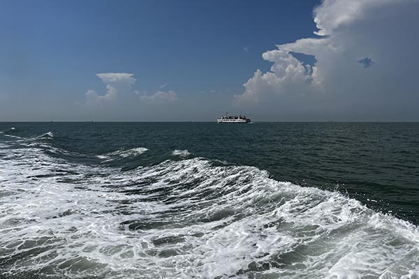 在清晨七點半的晨光中,滿載歡聲笑語的大巴,如同一艘陸地航船,載著我們駛向那片心心念念的蔚藍。一路上的談天說地,讓四個小時的車程變得輕快。當咸腥的海風透過車窗拂面而來,我們便知,目的地近了。沈家灣碼頭人頭攢動,我們的興奮之情也隨著海浪輕輕蕩漾。登上游輪,劈波斬浪,船艙內(nèi)是同事們不絕于耳的驚嘆與快門聲。那一刻,所有工作的疲憊仿佛都被海風吹散,拋在了身后。