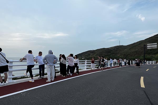 踏上嵊泗本島,入住稍作休整后,我們便迫不及待地投入它的懷抱。東海漁村的古樸與左岸公路的浪漫交織成一幅動人的畫卷。沿著海岸線漫步,看夕陽將海面染成金黃,平日里在辦公室嚴謹專注的同事們,此刻都是閑庭信步的旅人,笑容格外燦爛。